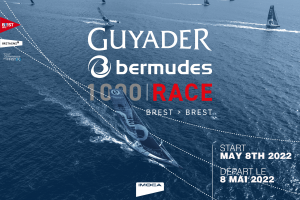La 3ème édition de la Guyader Bermudes 1000 Race est un parcours de 1200 milles, à effectuer en solitaire, au départ et à l’arrivée de Brest. La flotte s’élancera de Brest le dimanche 8 mai 2022 à 14h et effectuera une boucle en Atlantique via le Fastnet à la pointe Sud-Ouest de l’Irlande et un Waypoint Gallimard...
