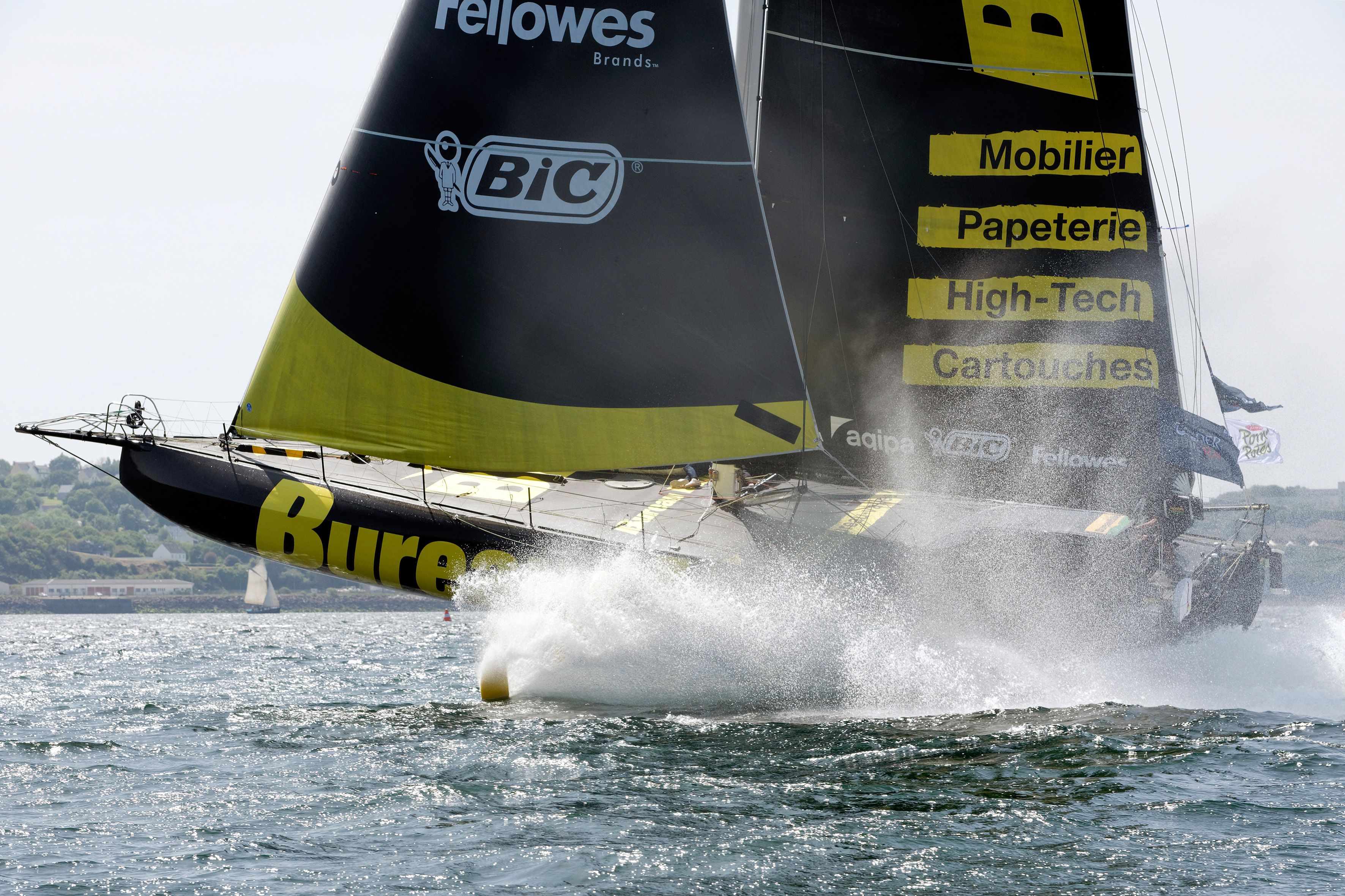Louis Burton (Bureau Vallée, vainqueur Défi Pom’Potes) : « C’était notre première navigation de la saison après deux à trois sorties en mer avant de venir ici à Brest. Il fait beau, nous avions des amis, des gens d’ici et l’organisateur de la course à bord, c’était très convivial. Nous sommes très contents et on se fait à nouveau plaisir après le chantier de cet hiver. C’est un bateau très performant à ces allures un peu débridées. Il ne lui faut que 14 à 15 nœuds de vent pour voler donc nous étions assez à l’aise, surtout sur le deuxième run. Ça s’est joué à rien – une seconde – et on peut considérer qu’il y a deux vainqueurs. Sur la course, les conditions vont être plus compliquées avec beaucoup de changements et de transitions. Tout reste ouvert ! »