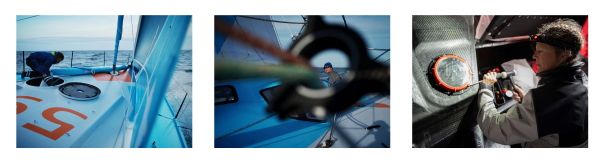 Sam Goodchild (FOR THE PLANET) : « On vient de passer le way-point « Tout Commence en Finistère » et on en a profité pour doubler Monnoyeur – Duo for a Job pendant sa manœuvre. On devine Paprec Arkéa dans notre sillage mais la visibilité n’est pas terrible, il fait tout gris. Sinon tout va bien à bord. Le dessalinisateur nous a fait des siennes et on a dû bricoler un peu mais tout est ok ! »