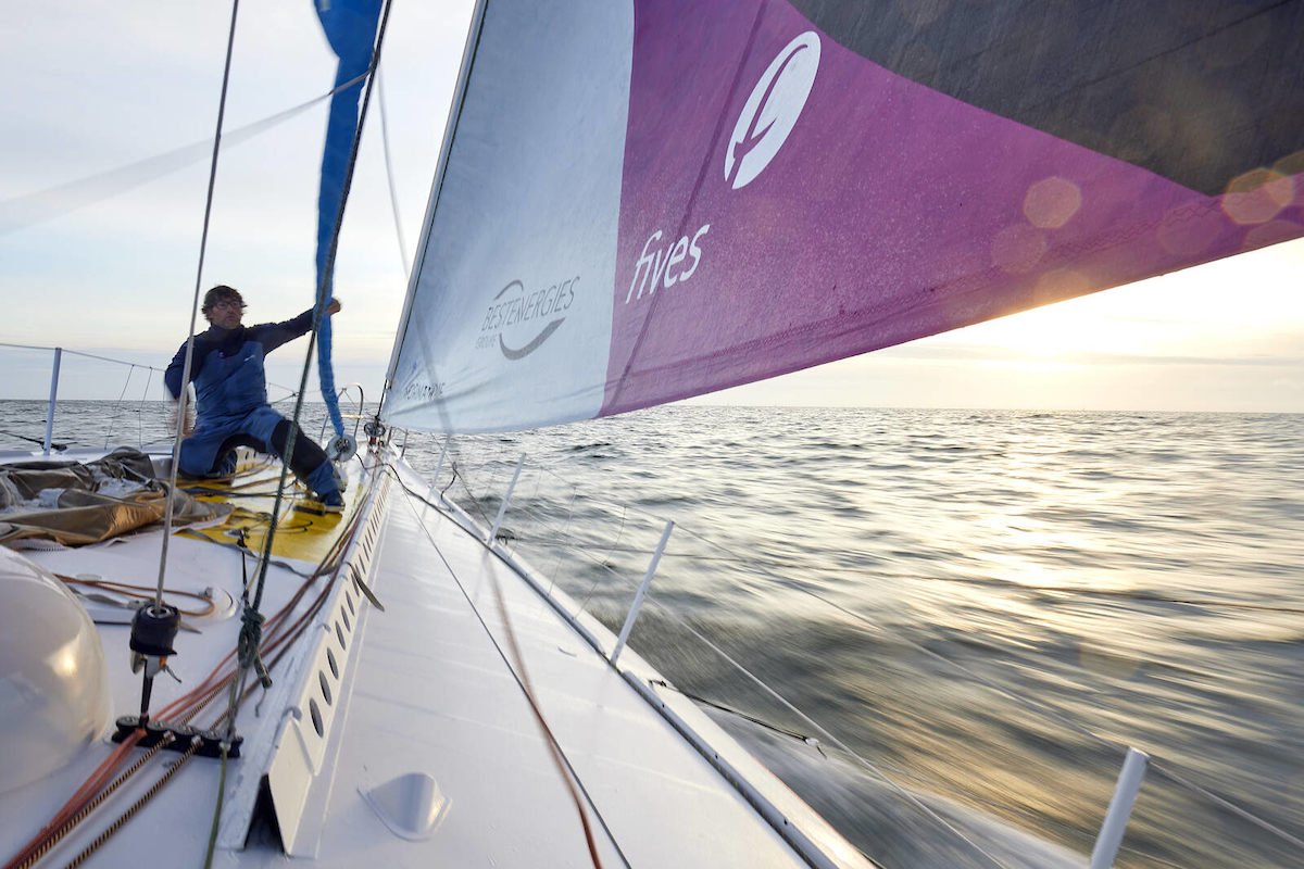 Benjamin Ferré (Monnoyeur – Duo for a Job) : « Tous autant qu’on est à bord, on avait un peu oublié l’enfer que c’est de naviguer au près, surtout Lou-Kévin (Roquais), notre médiaman, qui se demande bien dans quoi on l’a fourré ! On est au près dans de la mer et ça tape pas mal. On a bien mangé notre pain noir depuis le début de la nuit dernière parce qu’on a des petits soucis. On n’a plus de dérive tribord, un support d’hydro-générateur qui ne tient qu’avec une clé Allen et du Dyneema puis un disjoncteur d’ordinateur principal récalcitrant. Bref, plein de petits soucis qui ont bien animé ces dernières heures mais rien qui nous oblige à faire cap à l’Est donc on s’accroche. On attend la bascule à droite et on a hâte, car on pourra être à 100% du potentiel du bateau sur l’autre bord. On a pris bien cher sur le bord de reaching hier. C’est sûr que sur ce type d’allure, les foilers sont 4 à 5 nœuds plus rapides que nous, mais on est contents, car depuis le début de la course, hormis sur ce bord, on a toujours régaté à 100% du potentiel du bateau. À présent, on a quand même hâte de retourner vers Brest et on ne lâche rien ! »