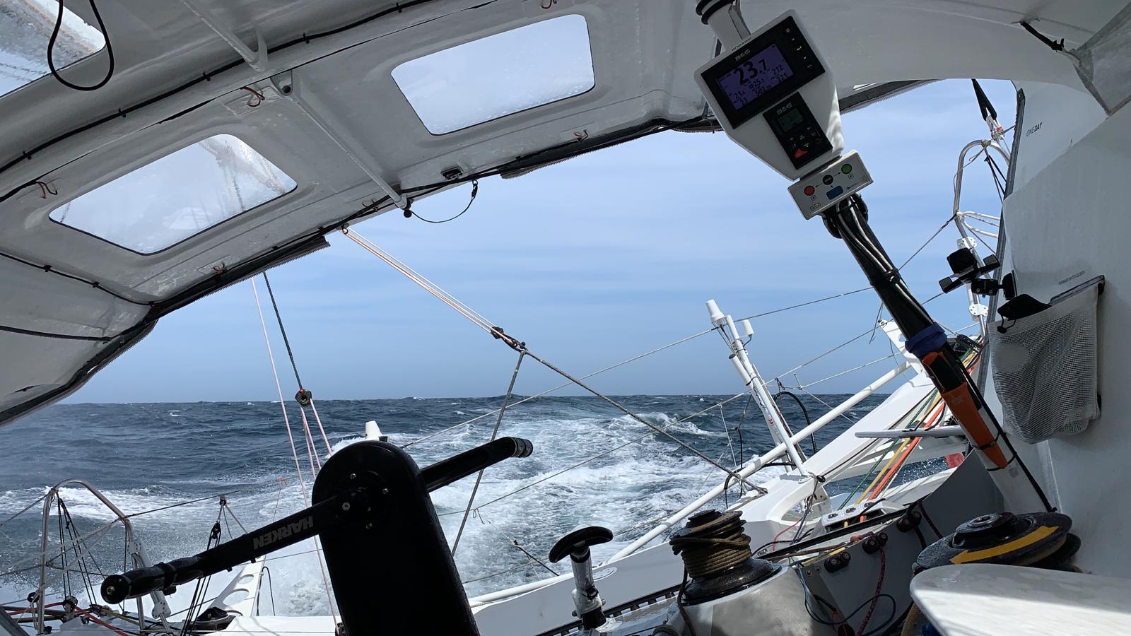“It’s like being in a submarine”. Finnish sailor Ari Huusela nicely sums up life aboard the IMOCAs, powering along at full pace across seas with a deepening swell in a SE’ly wind of 25 knots gusting higher. In these conditions, the boats are really slamming, the skippers are confined to their cabins and any manoeuvres up on deck have been reduced to the bare minimum. The videos sent from on-board are wet with an impressive wake.