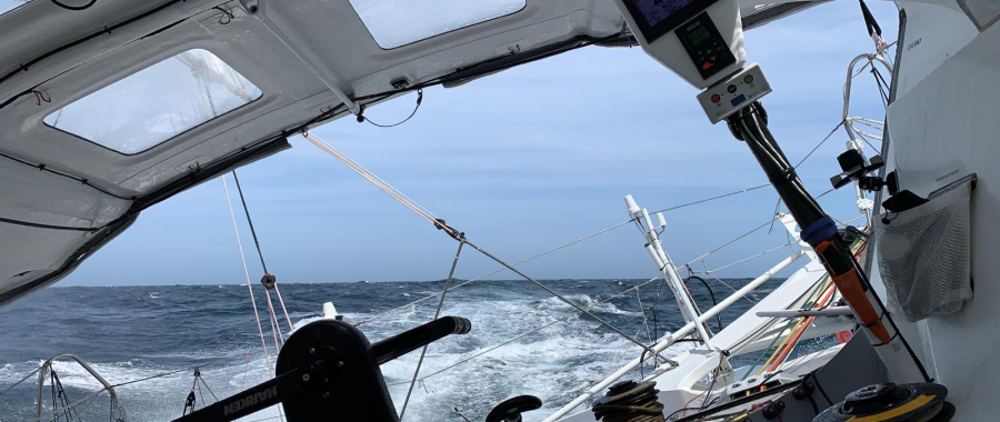 “There’s a cold, heeled over, wet atmosphere on Groupe Sétin. The wind kicked in as forecast midway through last night and it was important to manœuvre, adapt our sails to the new breeze and get used to life heeled over again”, writes Manuel Cousin. For the first time since the start in Douarnenez last Thursday, the gear is suffering. “I’ve put in a second reef in the mainsail and it’s a lot more comfortable”, explains Boris Herrmann. The utmost vigilance is a must if they are to avoid straying off the track. Exhausted but happy to be ticking off the miles, the racers are tempering their ardour, as testified by Fabrice Amedeo: “I’ve opted for a prudent sail configuration, but the boat’s still flying. It’s just incredible. I’m happy because I’m just about managing to get some rest and above all I’m trying not to lose sight of my main objective, which is to go all the way and validate everything that needs it.”