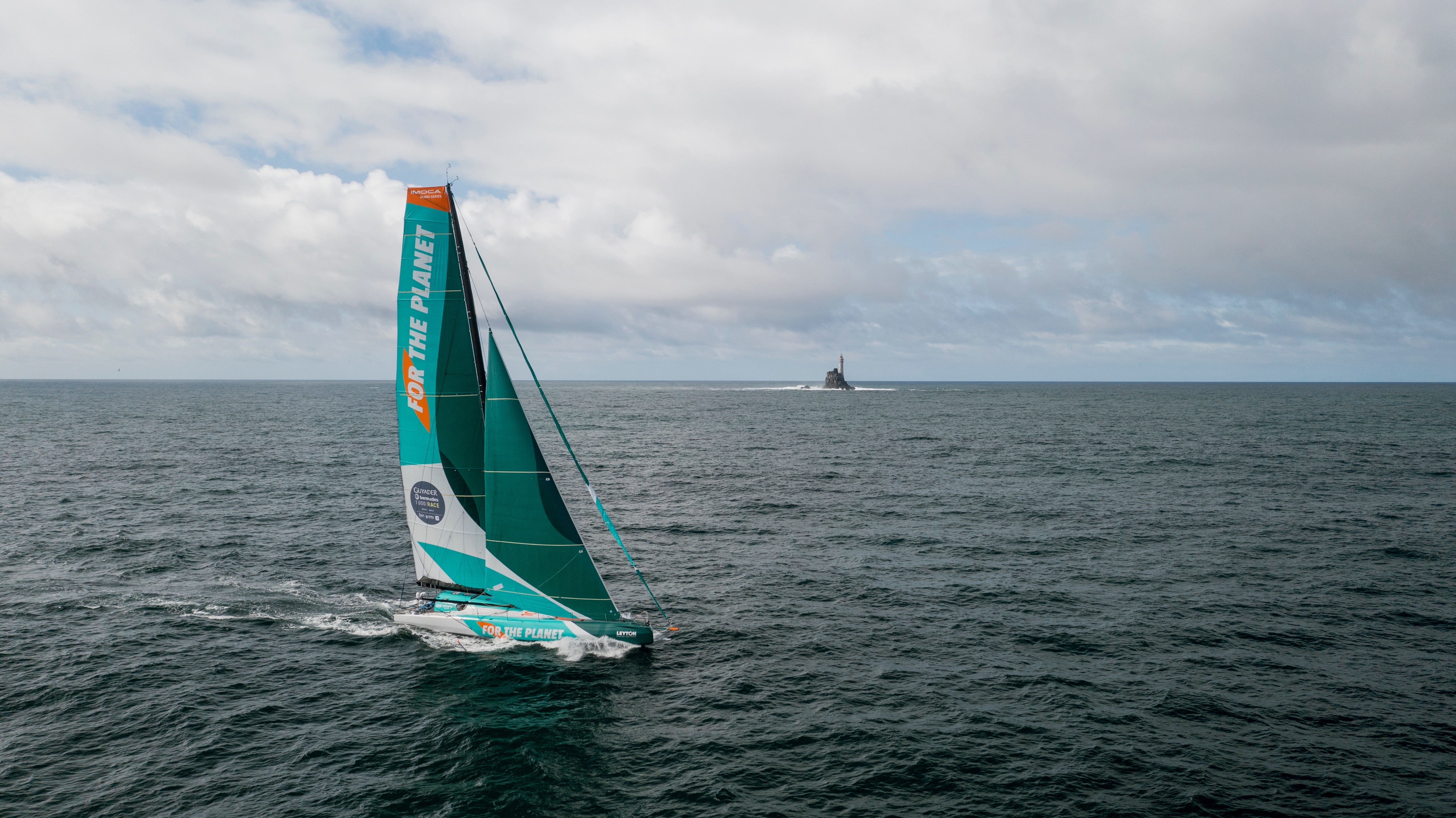 Sam Goodchild (FOR THE PLANET) : « On vient de passer le Fastnet et en allant vers le sud, il y a de plus en plus de vent et de mer mais on a un bon angle ce qui permet au bateau d’aller vite, vite, vite. On essaie de rattraper nos copains de devant, FOR PEOPLE et Charal 2. Ce n’est plus facile à dire qu’à faire mais on essaie. On essaie aussi de garder nos amis de Paprec Arkéa derrière. A bord, tout va bien. On se régale. On apprend plein de choses de ce bateau qu’on ne connaît pas encore bien même si on a récupéré beaucoup d’infos de la part du précédent skipper. C’est cool d’apprendre et de faire les choses par nous-mêmes. On s’amuse bien et c’est important. Il fait bon en Irlande. C’est la première fois aujourd’hui que l’on voit le soleil depuis le départ. On essaie d’en profiter un peu. On a 200 milles pour rejoindre le way-point « Trophée Région Bretagne » mais ça va aller vite. Ensuite, on fera route vers la marque Gallimard. Le près, se sera moins sympa mais il n’y aura pas d’autres choix pour rentrer à la maison. »