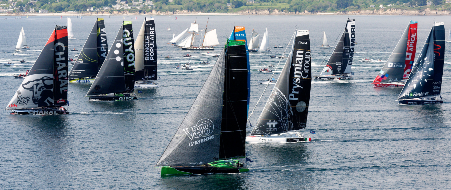 Ce dimanche 8 mai, à 14h40, avec un léger retard sur l’horaire prévu, le départ de la 3 e édition de la Guyader Bermudes 1000 Race a été donné au large de Brest. Les 24 marins de la classe IMOCA engagés dans l’épreuve se sont alors élancés en douceur, propulsés par un flux d’ouest soufflant entre 6 et 8 nœuds. Un vent erratique qui va largement compliquer la donne pour les solitaires sur les premiers milles de course et va les contraindre à multiplier les manœuvres d’ici au passage du way-point Trophée Département Finistère que les premiers devraient déborder en milieu de nuit prochaine. Dans ce contexte, les surprises ne sont pas à exclure. Les bateaux à dérives pourraient, en tous les cas, tenir la dragée haute aux foilers !