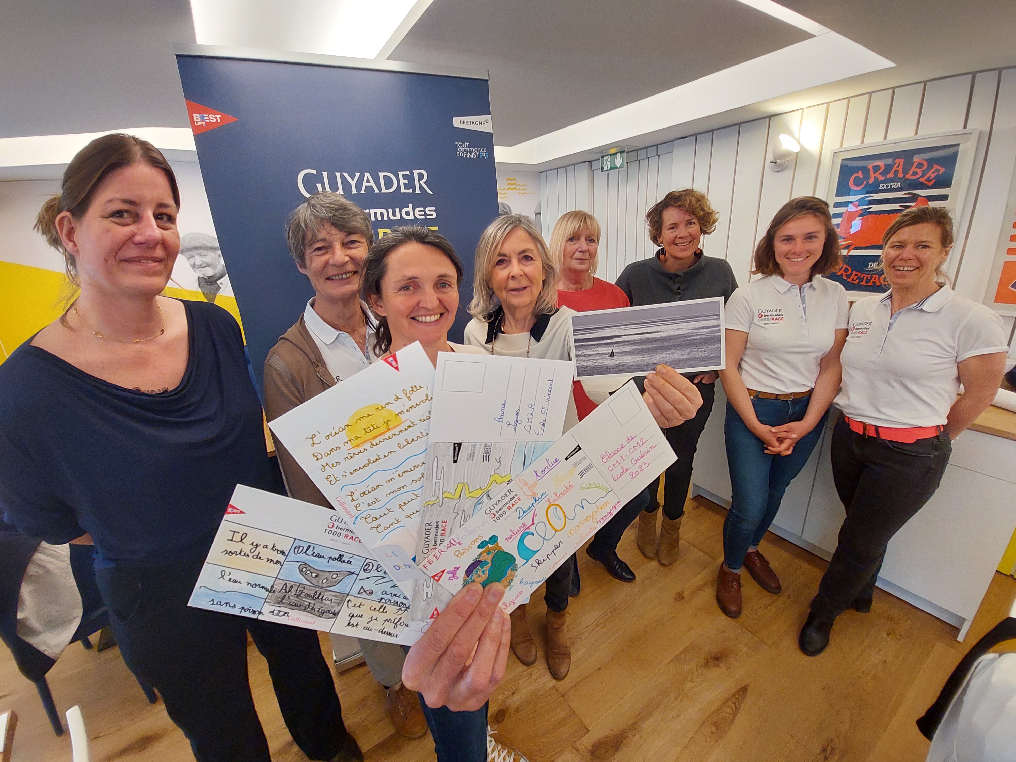 Au total, ce sont donc près de 1000 cartes qui ont été reçues par les organisateurs de la quatrième Guyader Bermudes 1000 Race, une épreuve à laquelle sont une nouvelle fois associées les éditions Gallimard afin de proposer une pause littéraire aux auteurs, aux skippers, mais aussi, et pour la première fois, aux élèves des classes de CM1 et de CM2 de la ville de Brest. Poèmes, proses, initiales, Haiku, dessins… Les types d’écrits produits par les enfants ont été aussi riches que variés, ainsi qu’en témoigne Emilie Kuchel, adjointe au maire de Brest et déléguée aux politiques éducatives : « A chaque fois que l’on propose des choses aux enfants, on est surpris par ce qu’ils sont capables de réaliser. Lors de la découverte des différentes cartes postales j’ai, pour ma part, été très impressionnée par leurs regards altruistes. Ils relatent de jolies choses, posent de vraies questions et soulèvent même des questions politiques en évoquant notamment la pollution des océans. Les écrits que nous avons reçus ont tous été très beaux et très créatifs ». En ce sens, si le travail de lecture a été intéressant et même fascinant, il a aussi nettement corsé la tâche du jury lors de sa délibération. « Le choix a été très difficile. Il y a eu énormément de choses différentes et beaucoup de rêves évoqués. Je tiens à féliciter vivement tous les enfants pour leur travail », ajoute Emilie Kuchel.