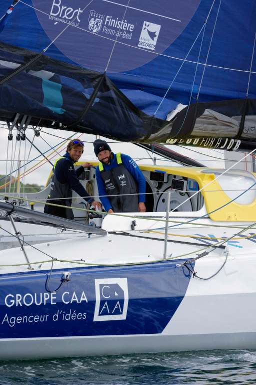 Alongside his Mini project, he coaches Benjamin in his learning of the weather. He joins the Monnoyeur-Duo For a Job project in January 2023, and becomes co-skipper for the whole season and Boat Captain of the IMOCA until the Vendée Globe.